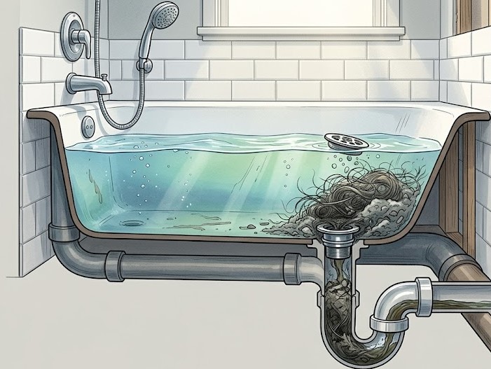 In one case, the “clog” is close by and makes itself known immediately. In another, the water drains poorly because the passage further down the pipe is already narrowed or partially blocked. Therefore, it’s important not to “guess based on a hunch,” but to understand exactly what scenario you’re dealing with.